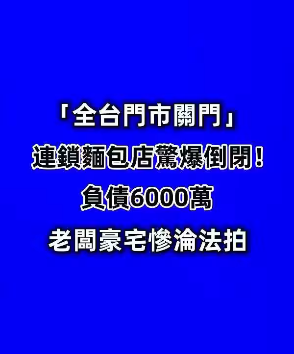 「全台門市關門」連鎖麵包店驚爆倒閉! 負債6000萬 老闆豪宅慘淪法拍!