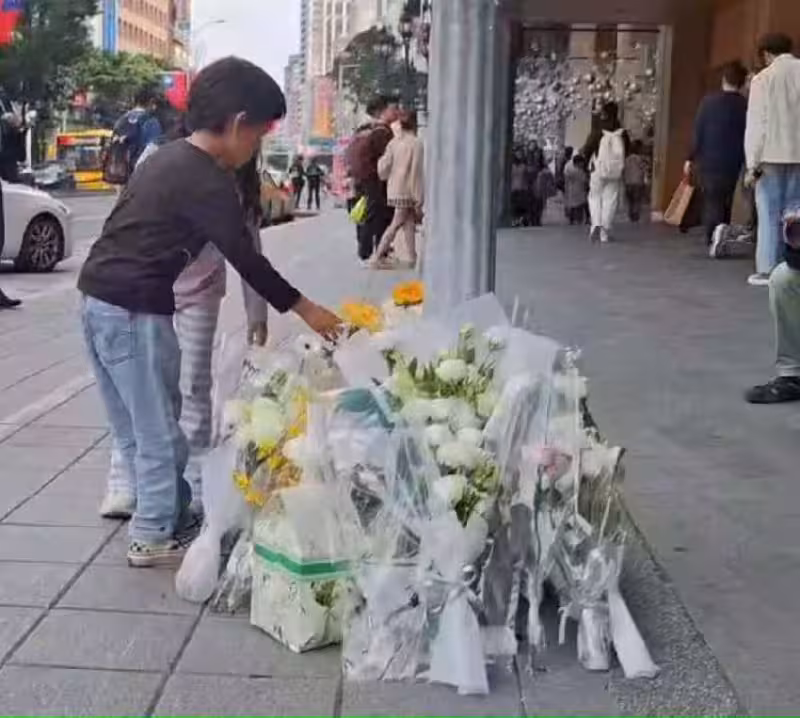 一些民眾20日白天在中山站商圈獻花致哀。 (圖/中天新聞)