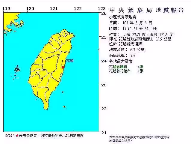 根據中央氣象署地震測報中心資料,此次地震在花蓮縣太魯閣觀測到最大震度3級,而宜蘭縣部分地區則測得震度2級。