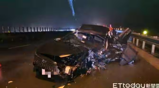 根據現場畫面,事故現場相當慘烈,肇事車輛已經嚴重變形,幾乎要斷成兩截,完全成為一堆廢鐵。