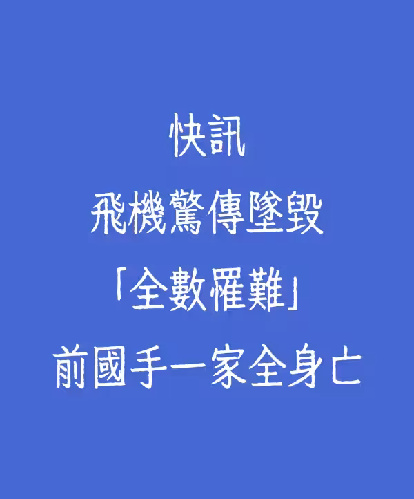 快訊/飛機驚傳墜毀「全數罹難」前國手一家全身亡