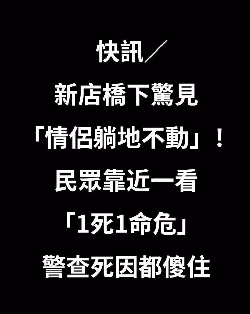 新店橋下驚見「情侶躺地不動」 民眾靠近一看「1死1命危」 警查死因都傻住