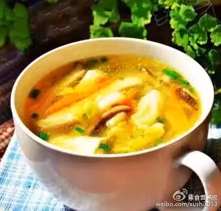 原料:豆腐100g、大白菜100g、香菇4朵、胡蘿蔔50g、油適量、鹽適量、胡椒粉適量、蘑菇精適量