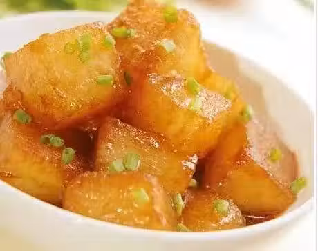 2.熱鍋下油,油熱後下入冬瓜塊煎至四面略顯金黃後,把冬瓜扒到鍋邊,中間下少許白糖炒出糖色後和冬瓜塊一起炒勻。
