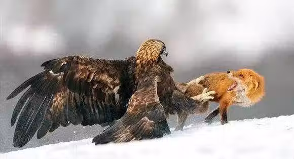 33.金雕大戰狐貍,狐貍夾著尾巴嗷嗷直叫。灰狼可與金雕大戰,狐貍可不行,金雕太兇猛了!