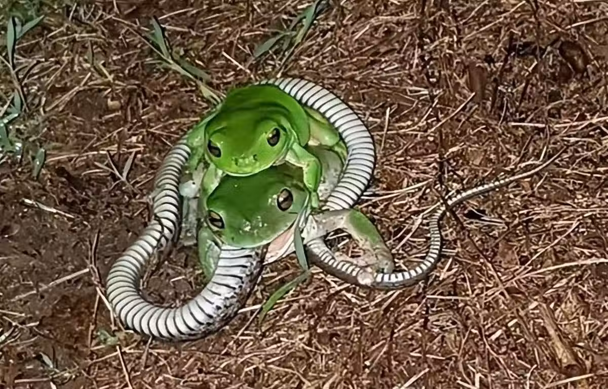35.蛙一邊游戲一邊吃。重要的是,蛙吃的是蛇,這蛙真的是個狠角色啊!
