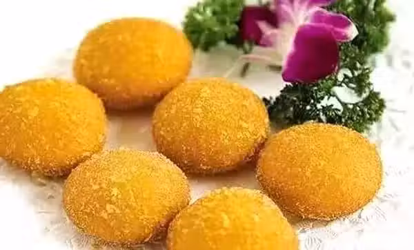 1、將南瓜洗凈,去掉皮和瓤後,切成塊末,放入蒸鍋中蒸熟搗成泥,加入麵粉、然後做成大小同一的圓餅,再沾上麵包糠待用。