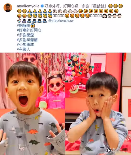 胡杏兒喜收周星馳春聯!大兒子Brendan戲精上身 從頭到尾都在搶鏡