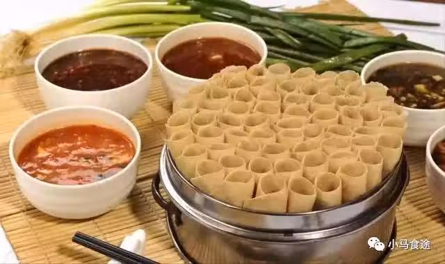 3.蒸的時候調些蘸水,蘸水有葷有素,渾蘸水可以將五花肉切成小片,放入小碗中,加入干辣椒、小茴香、八角、蔥段、芫荽、食鹽、調和面等,可以跟栲栳栳一起蒸製。出鍋後練去八角等香料,直接就可以當蘸料食用。