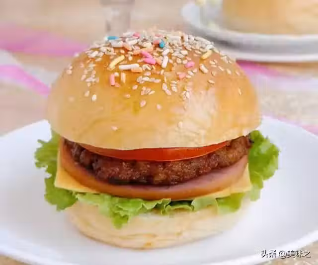 芝麻餐包2個、早餐奶酪適量、火腿適量、生菜適量、西紅柿適量、肉糜適量、蔥白末適量、薑末適量、鹽適量、生抽適量、胡椒粉適量、玉米澱粉適量、蛋液適量。