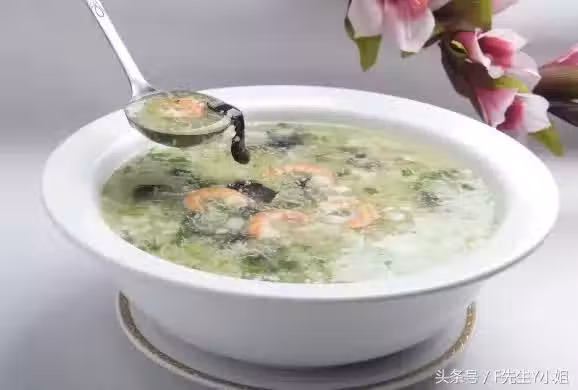 嫩豆腐1塊;鮮蝦仁10隻;香菇6-8朵;雞蛋2個;香蔥適量;紫菜適量;
