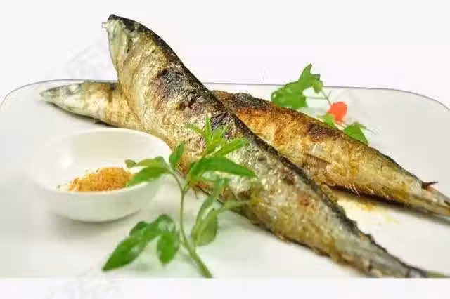 2、晃動煎鍋讓油鋪滿煎鍋,油燒熱後把秋刀魚放入。用中小火煎制秋刀魚,煎至兩面微黃。撒入孜然粉。再煎至魚身成金黃色即可,食用時滴少許檸檬汁。