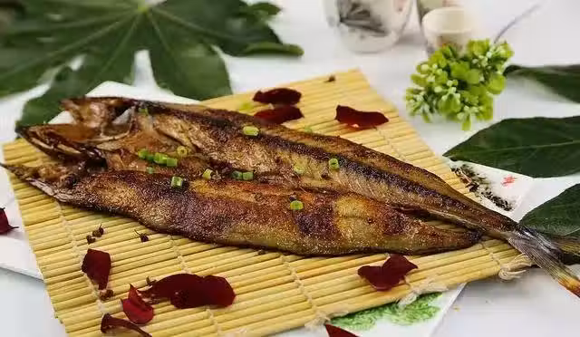 3、腌好的的魚兩面沾上麵粉,入油鍋中煎制。煎制兩面金黃魚熟透關火。將煎好的魚裝在盤中。澆上煮 好的料汁,再撒上香菜末即可食用。
