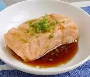 2、鍋里加水,燒開後把魚盤放在籠屜上,蓋好蓋子。看到冒氣後,蒸3-4分鐘即可;調汁:用小火將鍋燒至微熱,加幾滴橄欖油,油不要燒得太熱,烹上幾滴蒸魚豉油,再加一湯勺開水,接著倒入碗中,加上少許細香菜末調勻即可;蒸好的三文魚輕輕夾到另一個盤中,澆上調好的汁即可食用。