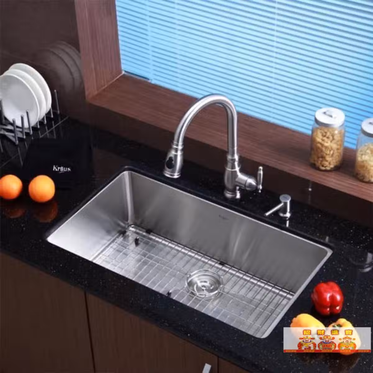另一種是比較常見的台下盆。這種水槽使用起來也是非常方便的,櫥櫃檯面上比較容易清理,檯面上的水、飯渣、菜葉輕輕一抹就能沖洗乾淨; 水槽的設計是和櫃檯鑲嵌融合為一體的,整個感覺會更加美觀、簡潔、大方一些。