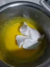 4.將三種粉混合過篩,倒入,繼續切拌均勻,速度儘量快,這一步有點難度