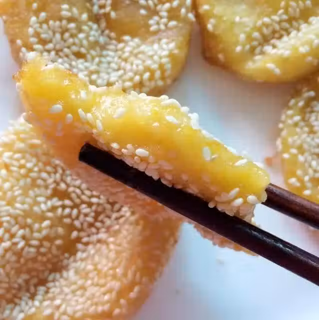 吃一口試試看,外酥里嫩,芝麻香,甜度剛剛好,真的很好吃,我第一次做,很成功,膜拜自己,哈哈
