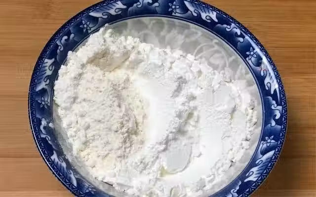 2、和面的時候,要用燒開的水燙麵,這樣包出的水晶餃子才能出現透明狀。並且和面的時候要邊倒邊攪拌,攪拌成絮狀,然後下手揉成軟硬適中光滑的麵糰,蓋上保鮮膜餳面15分鐘。