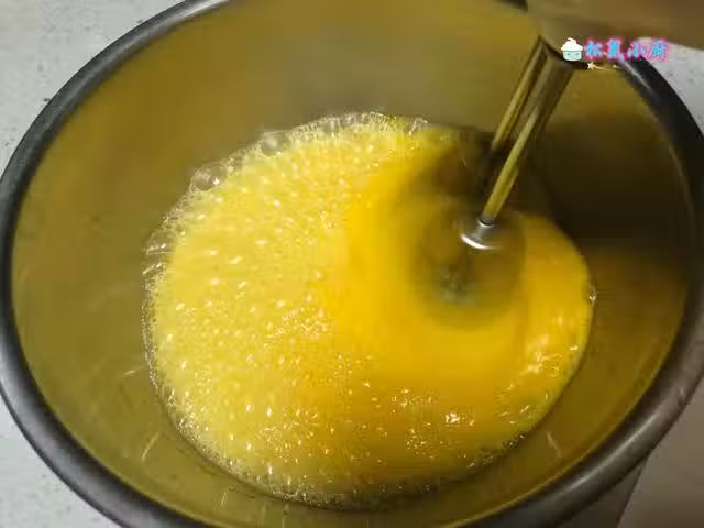 3、全蛋在40°左右比較容易打發,所以打發雞蛋的時候,可以將打蛋隔熱水中打發(熱水盆小一些,打蛋盆大一些,這樣就可以隔開熱水了)。