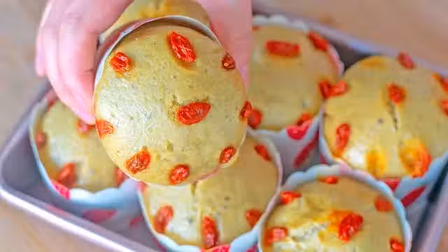 3根香蕉 3個雞蛋 20克白糖 3克酵母 250克麵粉 枸杞一小把