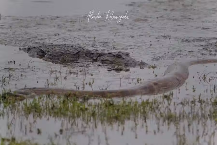 鱷魚與巨蟒的遭遇戰,蟒蛇剛剛進食完正處於疲憊期