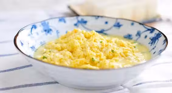 1.將雞蛋放入碗內,攪打均勻,加入蔥末及豆腐,再攪打均勻。 2.鍋放爐火上,放入食油燒熱,加入調好的雞蛋,炒至雞蛋凝固即成。