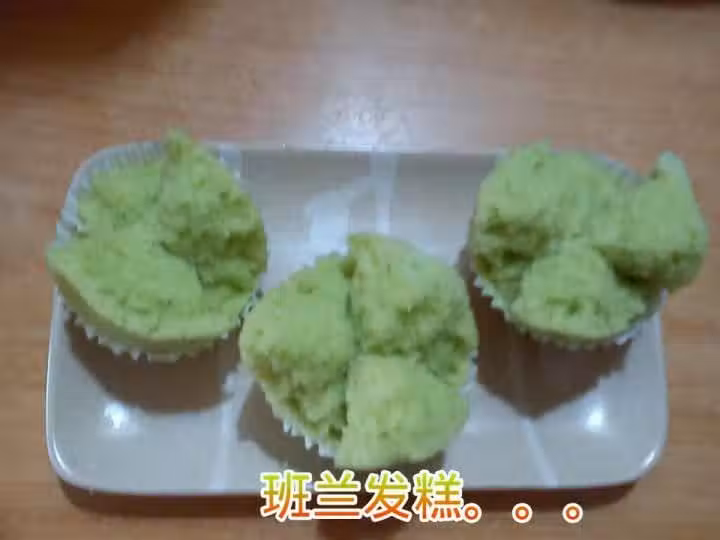 自發麵粉-250g,發粉-一小匙,白糖-150g,牛油-50克,蛋-一粒,清水-200ml-250ml,pandan葉-5-6大片。