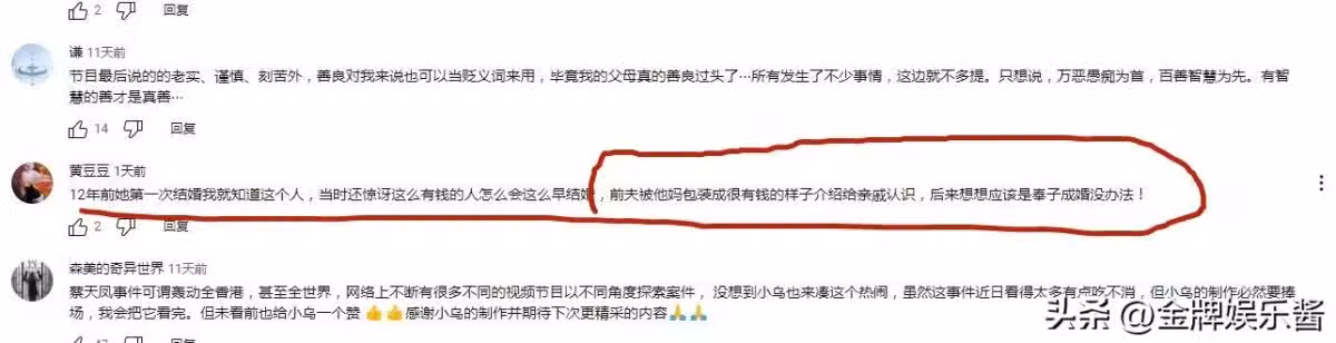 簡單說,就是前夫鄺港智被他的母親包裝成了富家貴公子,還被介紹給很多人相親,結果一來二去就和蔡天鳳認識了,而和蔡天鳳結婚就是奉子成婚,女方算是吃了個悶虧