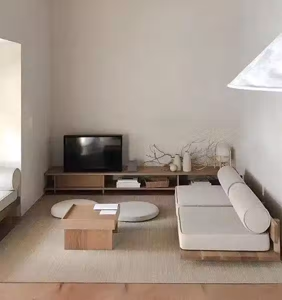這種砌地台的做法,屬於百搭,無論是簡潔的日式風格、古典的中式風格,還是冷清的工業風格,它都能很好的融入進去,沒有一絲的生硬感。