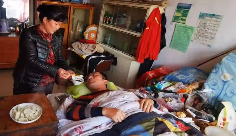 今年年初的時候,他突發腦溢血。命是撿回來了,可是導致了偏癱,吃喝拉撒只能躺在床上。在醫院住了14天,我也沒日沒夜地照顧了他14天。
