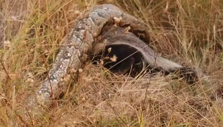 可以看出巨蟒還存活著,所以剛剛老實給平頭哥吃也能看出確實是膽怯,完全不是對手啊。