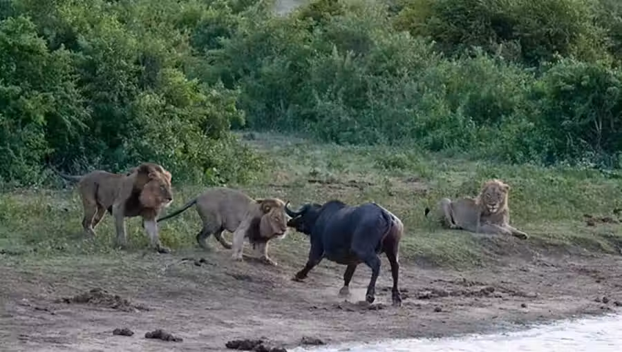 水牛吃錯藥挑釁獅群,見獅群不理睬更是主動進攻,用生命詮釋「不作死就不會死」