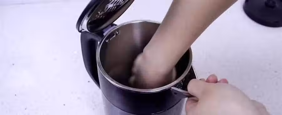 4.如果水垢很厚,不好清潔的話,我們不妨在燒水之前,不加清水稀釋,只在水壺中倒入白醋和檸檬。