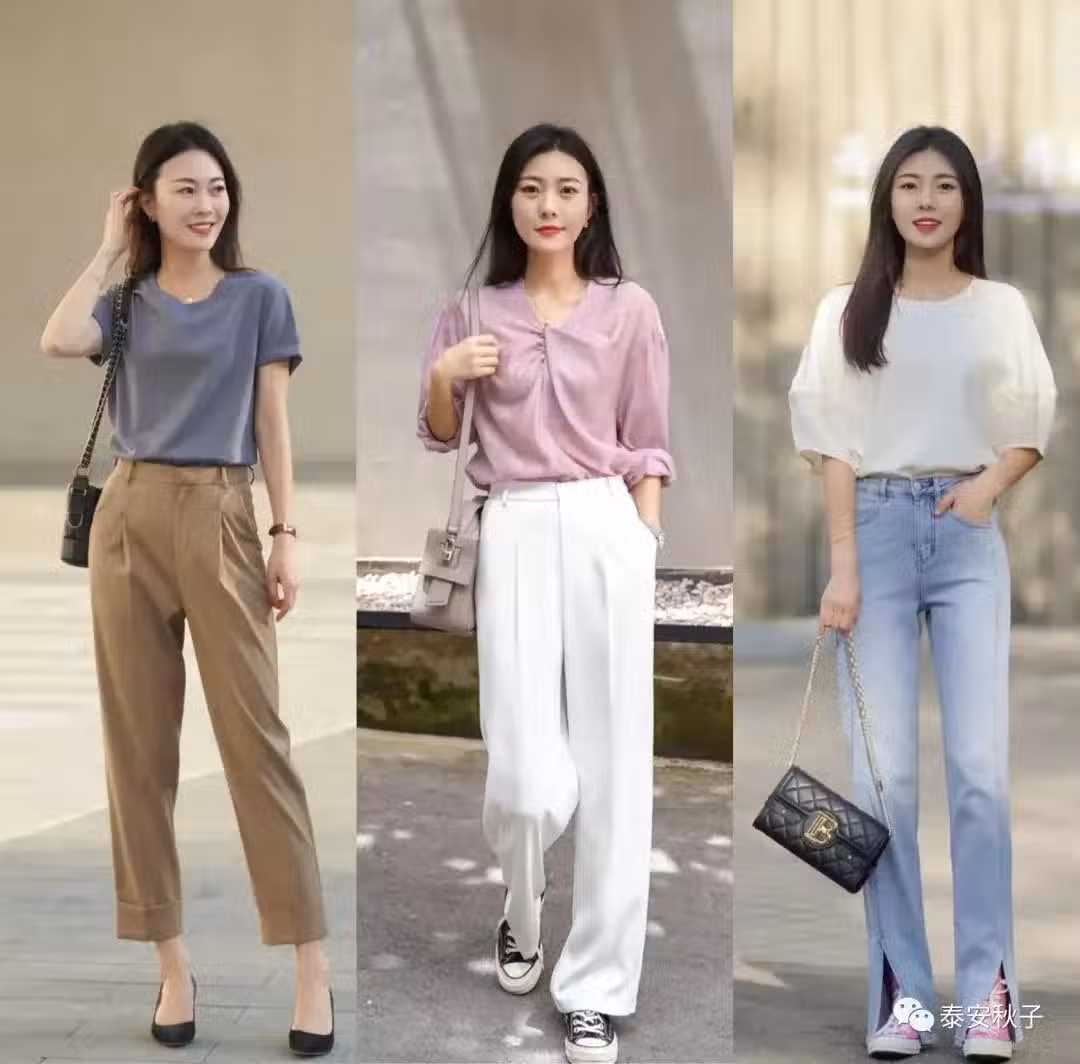 用看似寡淡的它,與舒適、氣質的小衫相互組合,再用「賽衣角」或是「褲腳開叉」等元素增加時尚看點,形成一種獨特、大女人風情的時髦感穿搭。
