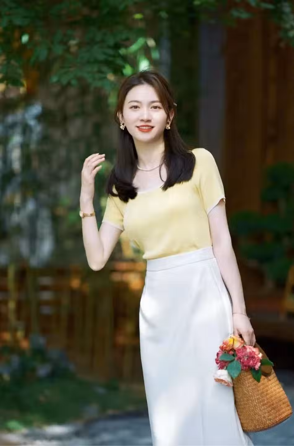 V領針織衫的設計顯白又有氣質,不對稱的裙擺設計更能展現女人味。這樣的穿搭適合想要展現優雅氣質的女性,舒適又不失女人味。