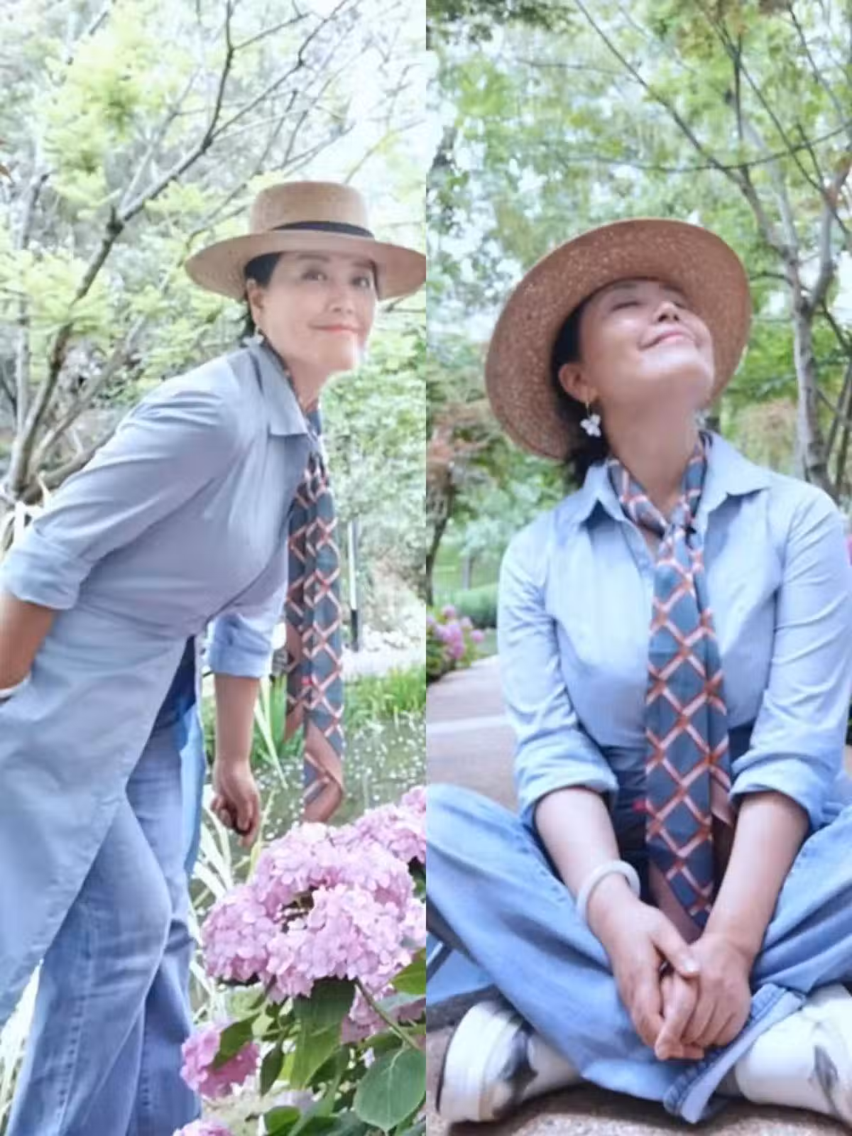 不管穿裙穿褲,媽媽輩都要選擇一頂帽子提升時尚感,推薦草編帽,搭配牛仔褲或者連衣長裙,都更有氛圍感。