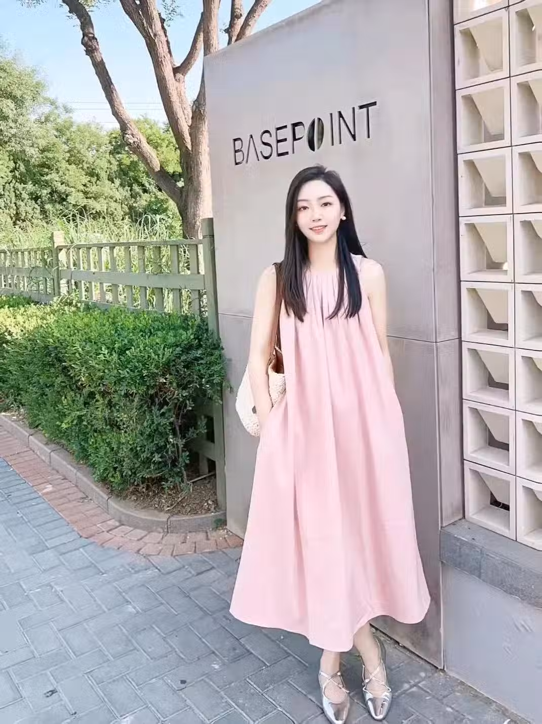 無袖衣領褶皺的質感,看起來凹凸有致。上窄下寬的設計,結合銀色高跟鞋的碰撞,給人一種視覺的清新感。▼