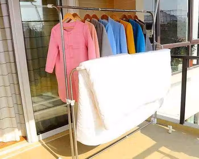 很多情況我們家中沒有那麼多可以晾衣服的地方,我們可以購置即可以在陽台上晾衣服的衣架,這樣晾衣架適合於小房子。其實在暴風雨天氣,也是十分的安全。還有一種移動式衣架,也可以曬衣服。