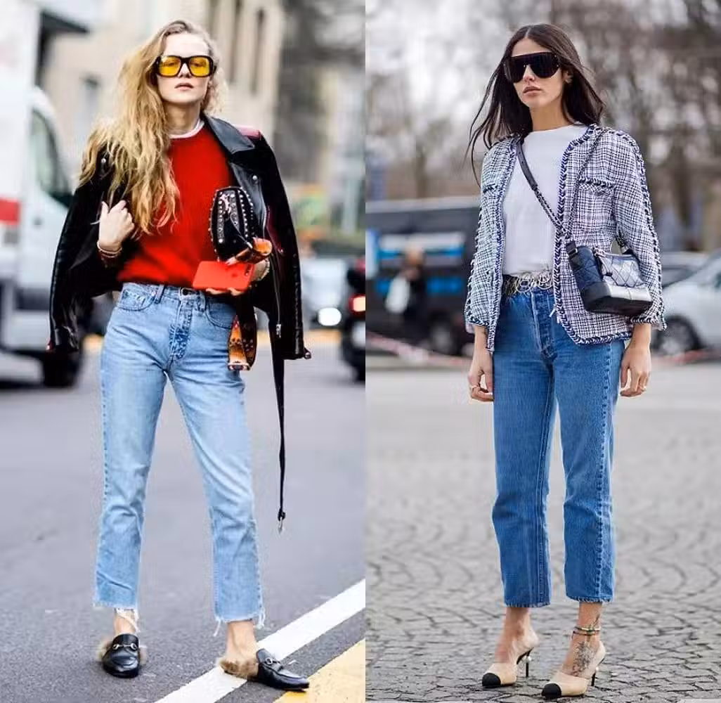 不過如果你的年齡超過了三十歲,最好是選擇設計簡單一些的直筒牛仔褲搭配低跟鞋,更能增添高級感,降低牛仔褲過分稚氣的屬性。