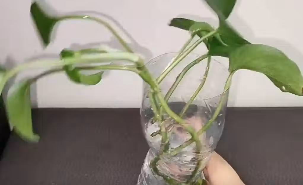 瓶子的下半部分我們不要扔掉,用剪刀把上面的切口處修的平整一點,然後放上一些水,家裡邊喜歡養殖一些水培的植物,就可以把它剪下來放在我們的塑料瓶里邊,這樣直接放在桌子上面,看起來也是特別的美觀。