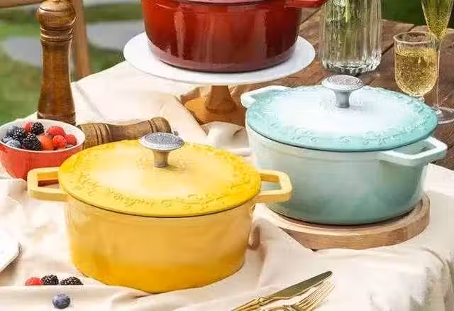 琺瑯鍋其實就是在鑄鐵鍋上加了一層琺瑯塗層,讓它更加美觀和易於清洗。琺瑯鍋也適合燉菜和燜菜,但要注意琺瑯塗層不能碰撞和刮擦。