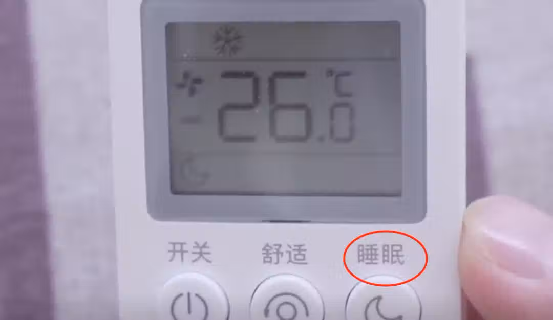 然後再調成睡眠模式,這樣空調會根據我們的房間裡邊的溫度自動上升1度,每上升1度就可以節省10%的電量,而且調到27、28度,這個溫度更符合我們晚上人體的感溫的溫度,也不會著涼感冒得空調病。