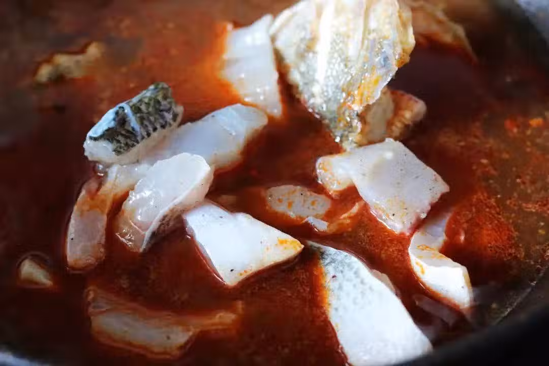 7、然後將魚骨和魚肉,也放入鍋中,這時候還可以加入少量的生抽調味,燉煮10分鐘左右。