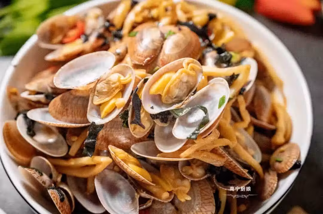 這樣一道酸筍炒花蛤,在廣西南寧的夜宵店基本都能吃到,也是每一個老南寧人必備的夜宵和下酒菜了。