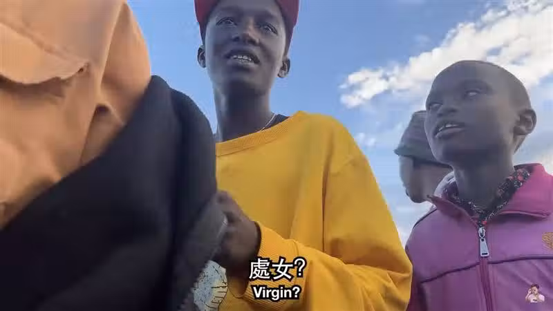 ▲Gigi被一群肯亞村民包圍詢問她:「還是不是處女?」,也被多個男性跟蹤騷擾。(圖/翻攝自托哥YouTube)