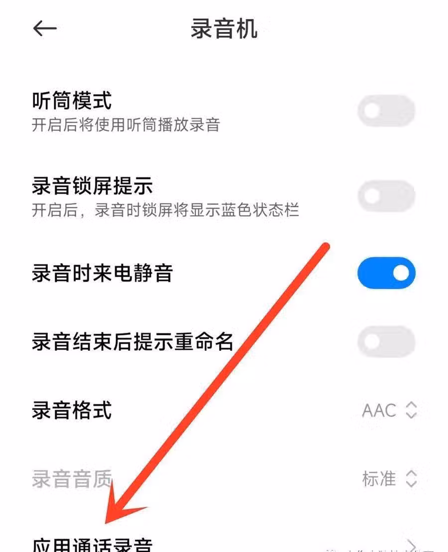 那麼在設置頁面里邊,我們往下可以看到一個應用通話錄音的功能選項,那麼我們點擊打開它………………………………………………