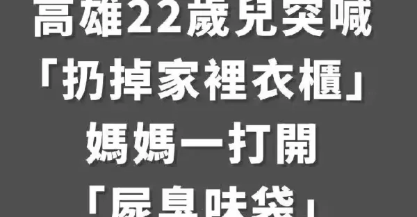 明明沒壞掉!高雄22歲兒突喊「扔掉家裡衣櫃...」,媽媽一打開「屍臭味袋」 大義滅親報警!