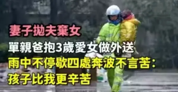 妻子拋夫棄女,單親爸抱3歲愛女做外送,雨中不停歇四處奔波不言苦:孩子比我更辛苦!