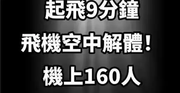 史上大型空難: 起飛9分鐘飛機空中解體,機上160人全數遇險