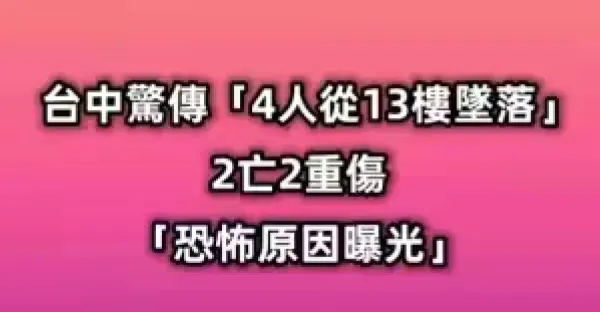 突發/台中驚傳「4人從13樓墜落」! 2亡2重傷「恐怖原因曝光」
